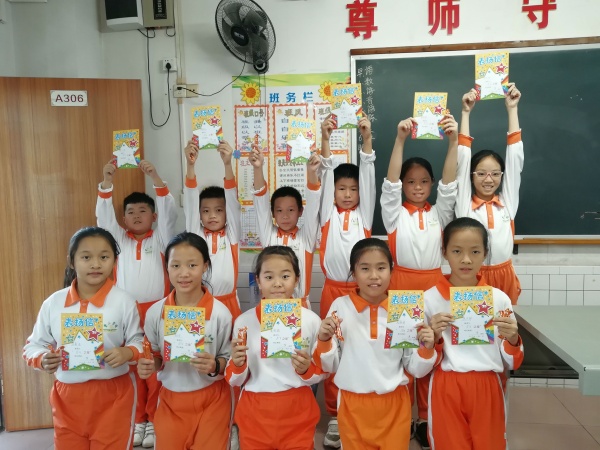 每當(dāng)小朋友拿著這張“小獎(jiǎng)狀”的時(shí)候,可以看得出學(xué)生們都是從心里笑出來的。因?yàn)檎驹谥v臺上是多么開心,多么驕傲的。瞧,五(2)班的小朋友拍照時(shí)多開心呢!但他們拿著“小獎(jiǎng)狀”就證明同學(xué)和老師的認(rèn)同,都表現(xiàn)特別得棒。