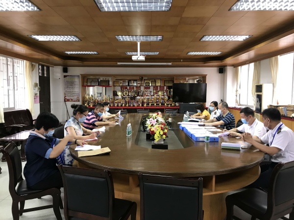 在本次的驗收工作中,上級領導認真檢查了學校的環境、設施設備、物資保障等硬件,也對學校的人員管理、教師的教育培訓和學校應急處置準備等方面進行了詳細的詢問和資料檢查。在檢查過程中,檢查組的領導們在學校行政領導和資料組老師們陪同下巡視學校,細致地檢查,逐項對照驗收資料目錄進行檢查,及時向行政、老師們反饋檢查意見。學校老師根據領導們的意見和建議,對工作中不夠完善的小細節馬上進行整改落實,把工作做細做實。在巡視校園后,檢查組的老師們在學校三樓會議室,向學校行政領導們反饋本次驗收工作的檢查意見和建議。