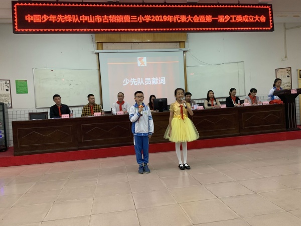 12月17日,中國少年先鋒隊(duì)中山市古鎮(zhèn)鎮(zhèn)曹三小學(xué)2019年代表大會(huì)(簡稱少代會(huì))在曹三小學(xué)階梯室隆重舉行。本屆少代會(huì)是在少先隊(duì)改革背景下,舉行召開的一次十分重要的大會(huì)。會(huì)議選舉誕生新一屆大隊(duì)委和審議通過了中山市古鎮(zhèn)鎮(zhèn)曹三小學(xué)第一屆少工委。出席本次大會(huì)的領(lǐng)導(dǎo)嘉賓有中山市古鎮(zhèn)鎮(zhèn)團(tuán)委專職團(tuán)干麥家浚、古鎮(zhèn)鎮(zhèn)教育事務(wù)指導(dǎo)中心德育專干、鎮(zhèn)少工委總輔導(dǎo)員湯成宗、曹三小學(xué)校長蔡汝浩等。
