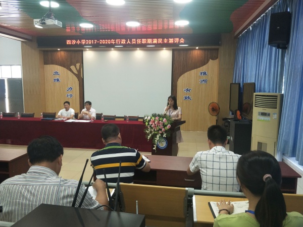 6月19日下午,四沙小學在階梯室舉行了2017-2020年行政任職期滿個人述職報告,副校長古焯煊、馮艷芳,主任盧福棠、吳學聰、吳國元,副主任梁洪華、李寶明等行政就任期內的德、能、勤、績、廉等方面進行了述職,得到全體老師的肯定。