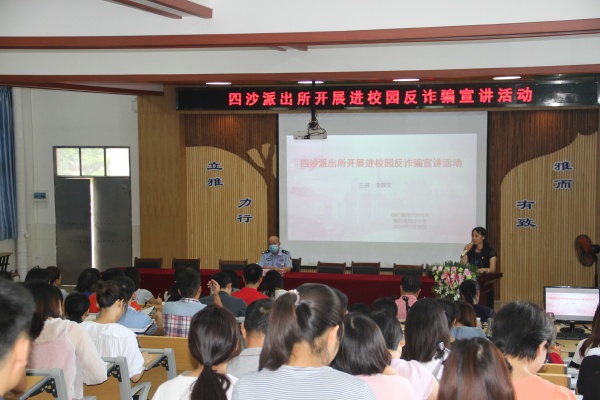 為提高廣大教師反詐騙能力,7月16日上午,四沙派出所反詐騙進(jìn)校園宣講活動(dòng)在四沙小學(xué)舉行。四沙派出所所長(zhǎng)李輝文對(duì)該校全體教師作了預(yù)防電信網(wǎng)絡(luò)詐騙宣講。