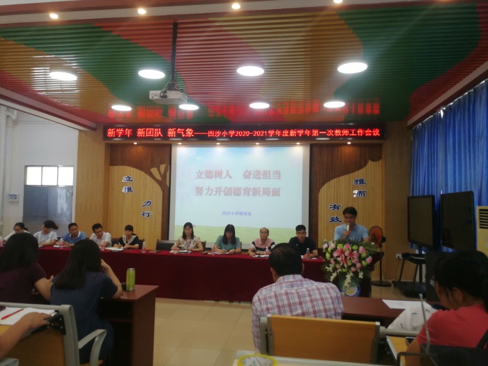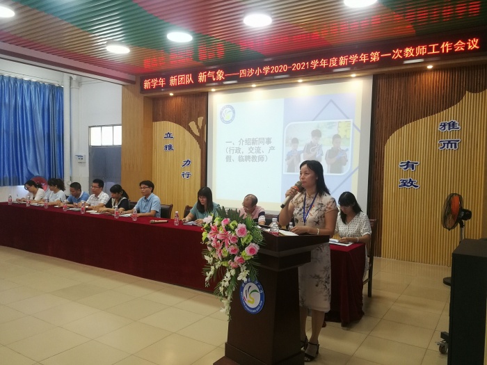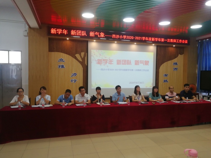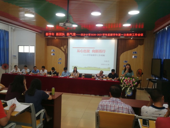 8月30日上午,四沙小學在階梯室召開了“新學年 新團隊 新氣象”為主題的2020-2021學年度第一次教師工作會議。全體行政和教師參加了會議。會議主要由校長歐慧芳、副校長馮艷芳、盧福棠就相關的工作進行了布置和安排。