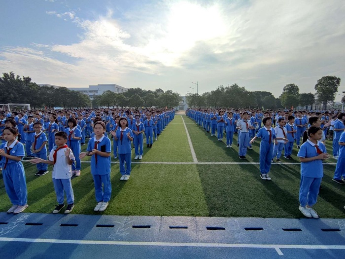 最后,由大隊部輔導員葉柳星老師倡議全體師生們積極踐行“四個一”打卡活動:對老師們說一句話真誠的祝福,敬一個標準的隊禮,完成一份整潔干凈的作業,遵守一切校園文明守紀的規章制度。號召全體隊員們愛老師,用實際行動表達對老師的感恩之情。