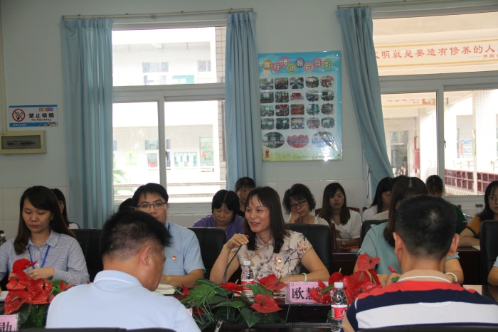 座談會上,全體人員首先觀看了四沙小學宣傳片,領略了該校儒雅教師風采和文雅學子的精神風貌。接著,校長歐慧芳代表全體老師感謝黨委政府親切關懷,隨后匯報了學校始終堅持黨的正確領導,全體教師共同努力,在教育教學、學校管理、校園建設、教師成長等方面取得的成績、存在的問題和未來的發展方向,表示了該校老師將會不忘初心,牢記使命,為教育事業的發展多作貢獻的信心和決心。