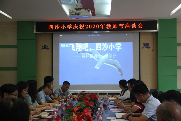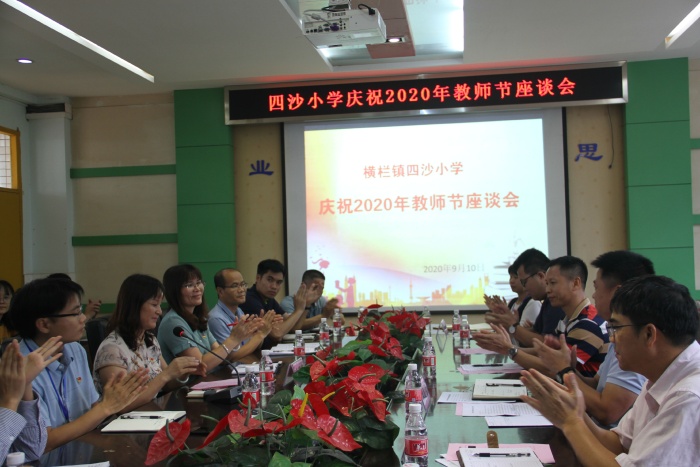 在第36個教師節到來之際,2020年9月10日下午,橫欄黨委委員、紀委書記林穎鋒蒞臨四沙小學進行教師節慰問座談。座談在會議室舉行。教育事務指導中心德育專干冼偉勛、該校全體行政、2019學年市鎮優秀教師、學校骨干教師、支教老師和退休教師代表參加了座談。