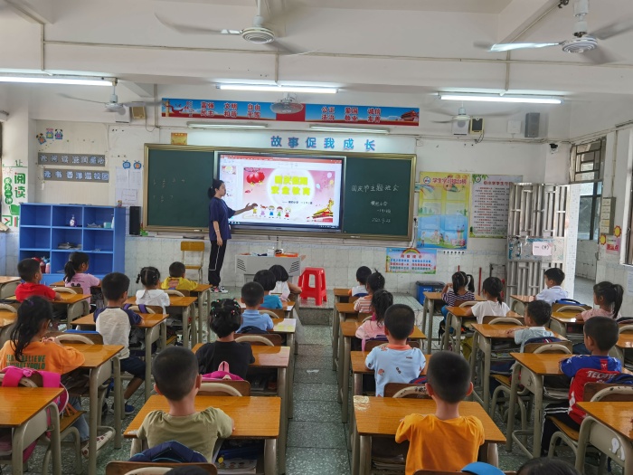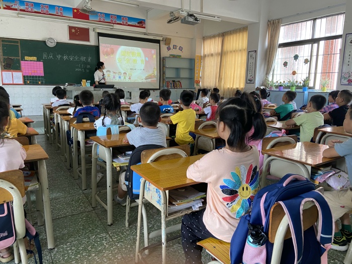 隨后,各班在課室開展國慶假期安全教育主題班會。各班班主任通過生動有趣的課件、視頻等對學生進行交通、預防詐騙、預防溺水、預防踩踏事件、用火用電等安全教育。