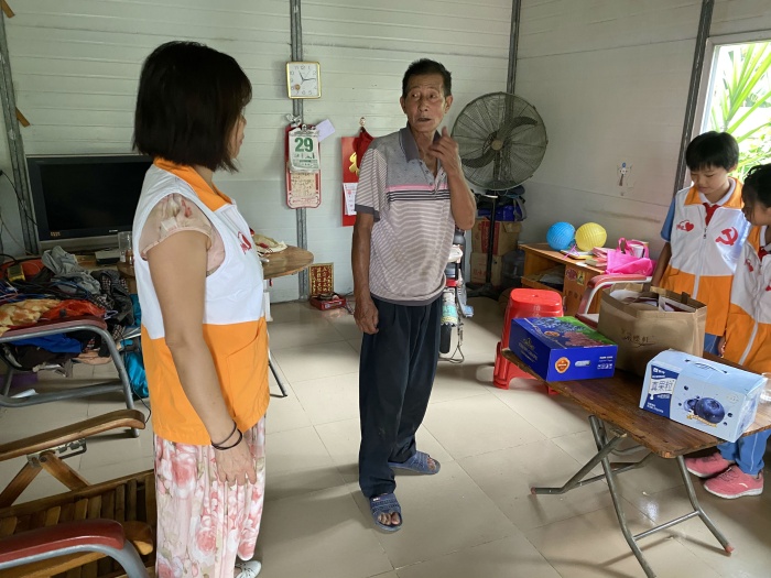 這次探訪為每一個家庭準備了應節的月餅、水果等禮物。首先,到達的是小杰和小軒家。去到小軒家,只見行動不便的小軒奶奶坐在輪椅上正在庭院休息,身體欠佳的爺爺陪伴著。通過幾年來的走訪、聊天知道,小軒是個非常懂事的孩子,這孩子知道爺爺奶奶身體都不好,所以,在日常中都會幫忙做些力所能及的家務活,閑下來的時候一般都會陪伴在奶奶的身邊,甚至在奶奶住院治療期間非常懂事地獨自一人承擔起照顧奶奶的任務。因此,盡管生活相對比較困難,但聊天中能充分感受到爺爺奶奶表現出的對生活的美好憧憬。