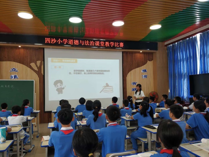 為了更有效的提高學校道德與法治課堂教學水平,交流教改經驗,突破教改難點,深入研究教材和教法,促進教師專業成長,2020年10月15日上午,四沙小學在階梯室舉行了“橫欄鎮四沙小學道德與法治課堂教學大賽”。本次比賽針對40歲以上的老師開展,通過預選,共有四位40歲以上的老師參加了比賽,比賽由四沙小學副校長盧福棠、教務處主任梁洪華及部分德育處成員擔任評委。