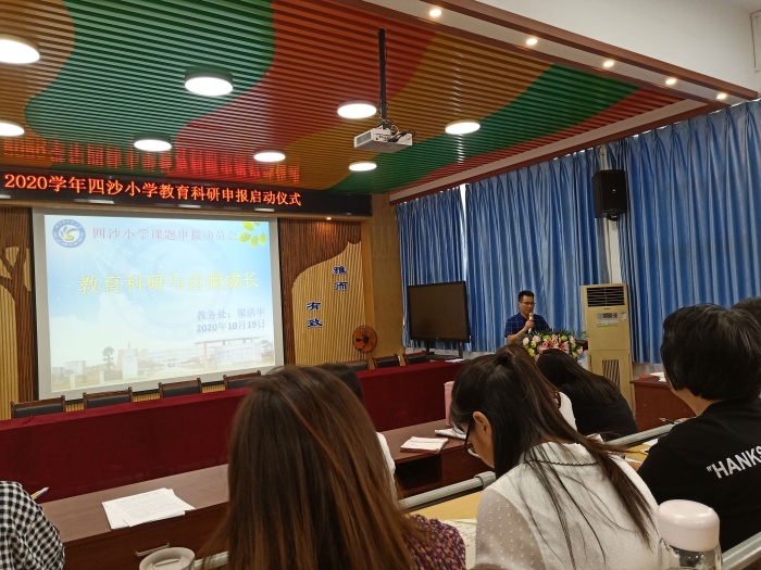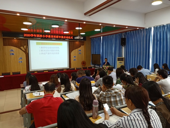 為進一步提高教師的教育科研能力,促進教師專業(yè)成長,形成“人人有課題 人人會研究”的科研氛圍,2020年10月19日下午,四沙小學(xué)在階梯室舉行了“教育科研與自我成長”的教師專業(yè)技能培訓(xùn)。教務(wù)處主任梁洪華從課題研究的重要性、做課題難嗎、如何做課題和做課題的具體要求等四個方面對全體教師進行培訓(xùn)。