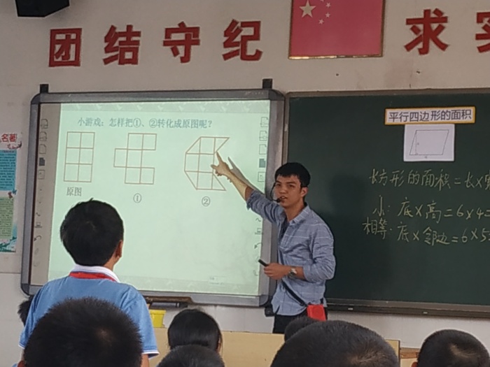這次教研活動先由新教師羅勇執教了《平行四邊形的面積》,展示了高效情趣數學課堂。課前,經過多次充分試教,師徒結對全程參與精心打造,羅老師采用新穎、靈活的教學方法充分調動學生參與課堂的積極性,提高課堂教學的高效性;他上課思路清晰、條理清楚,尤其是導學稿的設計受到各位老師的好評,也達到了本校內強素質外樹形象的目標。