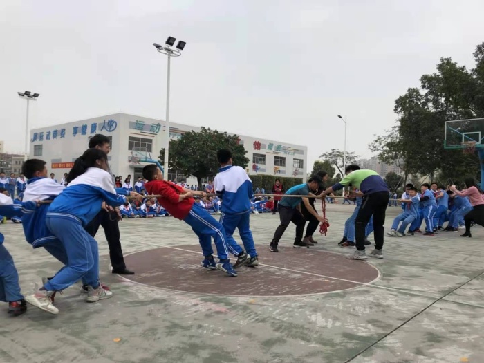 活動分別在田徑場和籃球場舉行,共有云梯接力、10人11足、豬八戒背媳婦、毛毛蟲競速、拔河和定點投籃等六個項目。全校教職工和家委會分為紅隊、藍隊、黃隊、綠隊、橙隊、紫隊等六個組組別參賽。