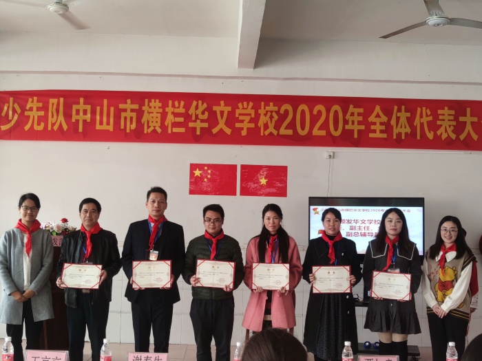 按照代表大會章程,審議通過了《中國少年先鋒隊中山市橫欄華文學校2020年代表大會選舉辦法(草案)》、選舉中國少年先鋒隊中山市橫欄華文學校第十二屆大隊委員會委員、表決通過了華文學校第二屆少工委委員;并由橫欄鎮團委書記鄭靜爽和鎮少工委總輔導員王京京為華文學校少工委主任、副主任、總輔導員、副總輔導員頒發證書,由華文學校謝春生校長為新當選的少工委委員們頒發證書。