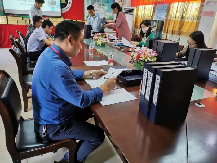 本次視導主要以查閱資料和實地察看為主。視導小組先是查閱了資料,小組成員根據《中山市民辦中小學規范達標和品牌提升評估細則(試行)》內容,對華文學校辦學方向、學校管理、教師隊伍建設、條件保障、辦學績效等五個方面進行了認真細致的督導評估。在檢查資料的過程中,視導小組成員一邊向相關負責行政了解情況,一邊對照資料進行檢閱,對存在的問題及時記錄并向相關負責人反饋,以便學校及時整改。