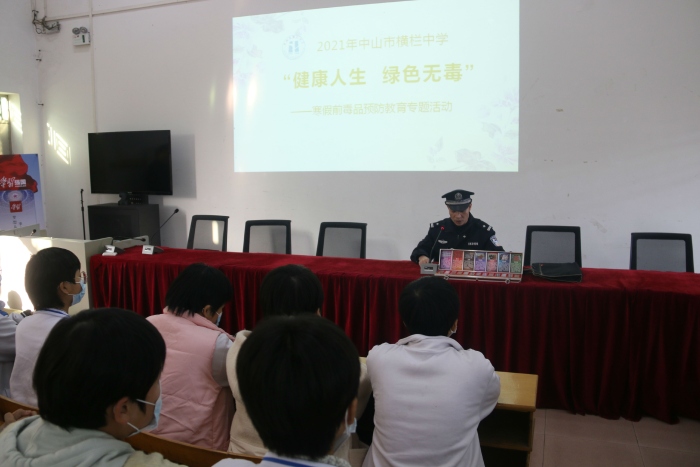 寒假將至,為了增強青少年學生在寒假期間的拒毒、防毒意識,度過一個快樂、安全的假期。1月13日下午,橫欄鎮禁毒辦聯合公安部門走進橫欄中學開展“健康人生,綠色無毒”禁毒預防宣傳活動,為青少年學生上好“毒品預防教育課”。