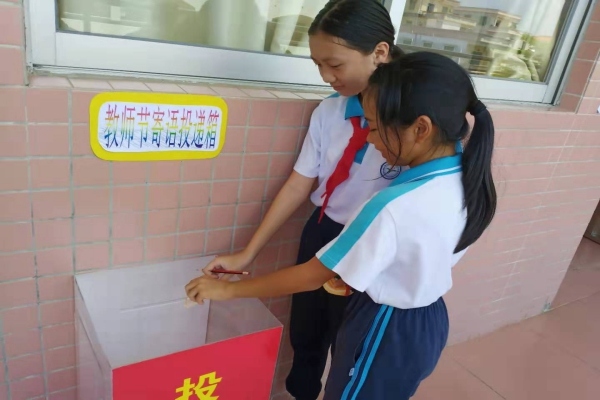 首先,由學生代表曾奕涵、梁杰穎給全體教師獻詞,用溫馨的話語表達真摯的情感,向老師們說出誠心的感謝和衷心的祝福。學生代表黃海盈為全體教師獻歌《梨花又開放》,最后隊干部為全體老師獻花,送上祝福。在各個班級上,少先隊員們把親手做的花、充滿愛意的賀卡獻給親愛的老師,向老師們表達全體同學最崇高的敬意。祝所有的老師工作順利,身體健康,永遠年輕。