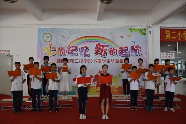 7月5日上午,橫欄鎮第二小學2019屆畢業典禮在學校飯堂隆重舉行。將近400名畢業生、六年級的授課老師以及六年級的家長歡聚一堂,度過了一個愉快而又讓人難忘的美好時光。
