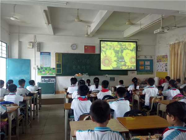 各班班主任利用班會課向學生講解什么是邪教、邪教的種類、如何防范抵制邪教等等,幫助學生直觀形象地認識邪教的危害性,提高辨別是非的能力,從而增強學生的法律意識,讓學生遠離邪教。同學們看完以后,紛紛討論交流,表達了自己反對邪教崇尚科學的決心,并最終形成一致共識:崇尚科學、健康生活,拒絕邪教,構建和諧,從我做起。此外,橫欄鎮第二小學還利用國旗下講話、學校宣傳欄等多種方式,向學生介紹“什么是邪教”,“邪教對社會的危害”等,讓學生更多地了解關于邪教知識,懂得邪教對人類的危害。