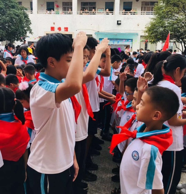 節(jié)日的校園,紅旗飛揚,隊旗、紅領(lǐng)巾格外鮮艷。一年級的同學(xué)們整齊有序地來到操場,懷著欣喜與激動,等待著他們?nèi)松械谝淮我饬x重大的、激動人心的時刻——加入光榮的少先隊組織。