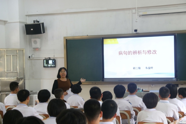 本次活動以期末復習常態課、教師評課以及專家交流指導的形式進行。首先,初二年級韋金葉老師執教了《常見病句類型和辨析》的復習常態課,整節課切入新穎、講練結合,充分發揮了專題復習在“刺激”和“強化”方面的突出優勢,課堂效果好。初三年級游晗昕老師則主要針對九年級上冊的三篇課內文言文進行了系統復習,整節課內容緊湊,既有基礎強化,又有拓展延伸,形式新穎,充滿語文味兒。兩節常態的復習課,讓在場的老師深受啟發,收獲滿滿。
