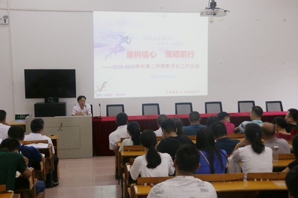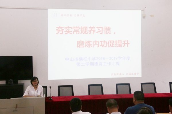 回顧腳印,反思成長軌跡,瞻眺未來。2019年9月2日下午,中山市橫欄中學全體領導、教師齊聚學校階梯會議室,進行2018-2019學年度第二學期德育、教學期末工作總結,總結會由辦公室主任劉凌云主持。