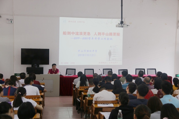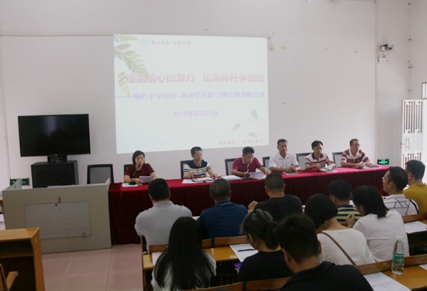 炎炎夏日,學期伊始。為迎接新學年,進一步全面、精準做好學校各項準備工作,凝聚教育力量、譜寫校園新篇章,2019年8月31日上午九點橫欄中學在行政樓階梯教室舉行了新學期全體教師會議。此次會議由辦公室主任劉凌云主持。