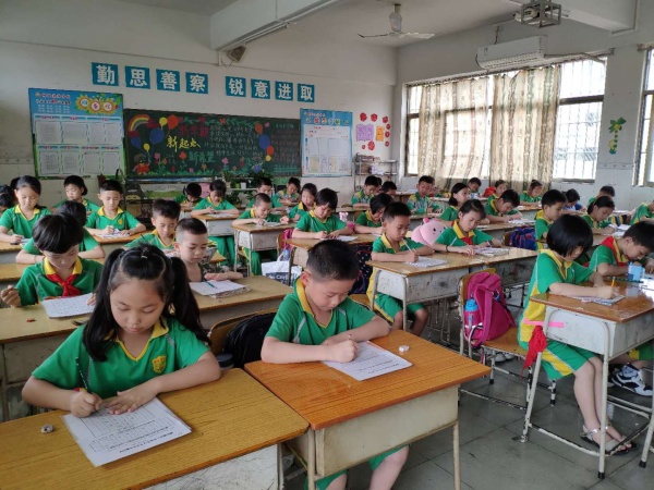 本次比賽參照《橫欄鎮第四屆規范漢字書寫大賽》的相關要求來進行,分學生組和教師組兩個組進行。首先進行的學生組的比賽,中午1點鐘,全校學生在各班班主任的組織下,進行了硬筆或軟筆的書寫比賽。書寫內容由教導處賽提前5分鐘統一下發,比賽時嚴格按照規定的時長進行。