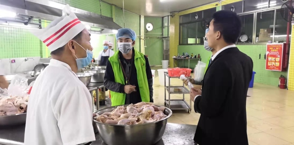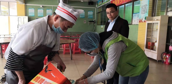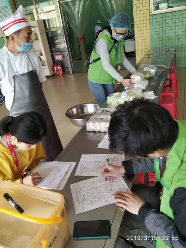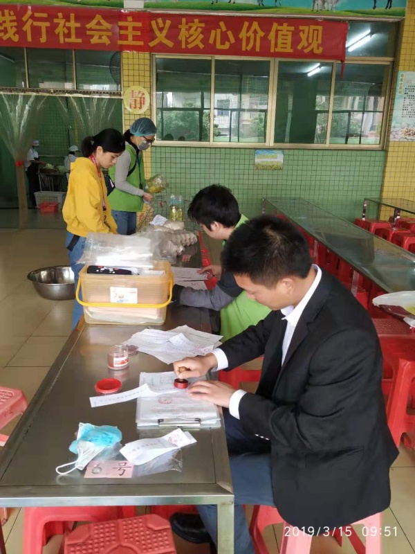 2019年3月15日上午,中山市市場監(jiān)督管理局委托工作人員吳裕年等一行三人來到橫欄港源學(xué)校,對食堂食品進行抽樣檢查。學(xué)校常務(wù)副校長劉華山、德育副校長鄧韶洲、后勤主任張勇接待了檢查組并陪同檢查。