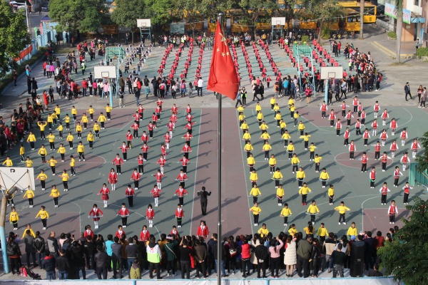 在大課間活動中,家長們又欣喜地看到孩子們逐漸褪去稚氣,已真正融入到了校園生活。規范有序的隊列,朝氣蓬勃又充滿童真的跳繩操、籃球操,給家長們留下了深刻的印象。家長們不時露出會心的微笑,并拿出手機記錄這美好的時光。