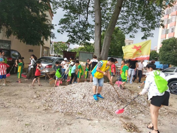 隨后,志愿者們回到學校。尹校長帶領大家對學校外面的停車場區域和健身廣場進行細致的打掃,清除各個死角的塑料垃圾、枯枝落葉及其他各種垃圾。盡管天氣炎熱,但我們的志愿者們依然興致勃勃,以飽滿的熱情參與此次活動。經過1個多小時的奮戰,付出得到了回報,停車場和健身廣場和校園終于變得干凈美麗了。