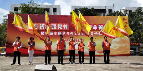 首先由學校校長尹少軍帶領創文志愿者,前往健身廣場參加創建文明城鎮啟動儀式。啟動儀式上,橫欄鎮黨委副書記、鎮長陳永華做了動員講話,他希望各級黨組織的每一位黨員都要身先士卒,不但自己要積極參與到創建工作中來,還要帶動身邊人也要積極參與創建文明城鎮的志愿工作中來,讓創文工作成為常態化。接著,橫欄鎮黨委書記勞國南為8個機關黨支部志愿服務隊和7個學校黨支部志愿服務隊進行了授旗,并宣布橫欄鎮主題黨日創文志愿服務活動正式啟動。