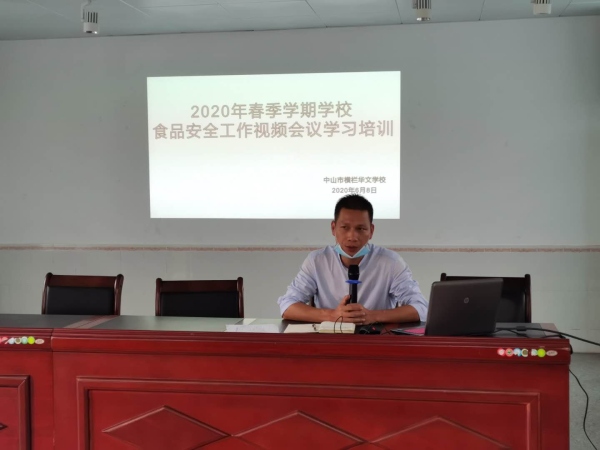 為進一步提高學校食堂從業人員食品安全意識,嚴守校園食品安全底線,保障師生飲食安全,華文學校于6月8日中午開展2020年春學期食品安全培訓活動。本次活動由學校總務處組織,總務處相關人員參會,賈如意副校長主持并講話。