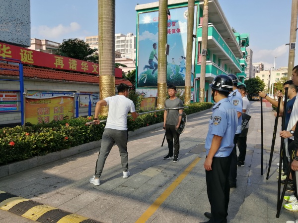 在訓練過程中,校園護衛隊成員們精神飽滿,斗志昂揚,在楊家永副主任的指導下認真訓練,仔細領會動作要領。楊家永親身示范各類防暴器械的使用要領,并對加強校園防暴應急處置方法等方面提出了許多有針對性的建議。隨后,校園護衛隊員們進行了角色模擬和實際演練,楊家永副主任也適時指出演練過程中的不足并進行糾正。