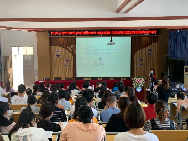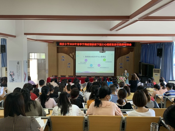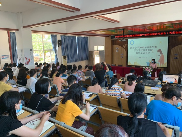 為進一步落實好疫情時期學生返校工作,保障師生安全返校,給予全體師生積極、正面的心理指引,2020年5月6日下午,四沙小學在階梯室舉行了2020年春季學期學生返校疫情防控準備工作暨返校心理建設指引教師培訓會。培訓由德育處副主任黃麗君主持,全體教師參與。