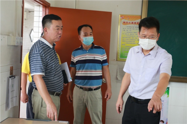 2020年8月28日上午,南頭鎮黨委副書記、鎮長藍海斌,黨委委員、副鎮長張均標,鎮紀委書記余漾,以及鎮文體教育局和衛計局負責人等一行到升輝小學督導開學工作情況。