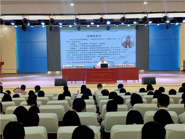 蔣主任以課文《扁鵲治病》開頭,提出文化是班級(jí)發(fā)展的軟實(shí)力,他指出當(dāng)前學(xué)校班級(jí)管理有三個(gè)境界:“保姆型”、“經(jīng)理型”、“領(lǐng)袖型”,他希望班主任們要成長(zhǎng)為靠建設(shè)班級(jí)文化的“領(lǐng)袖型”一流班主任。接著,他提出兩個(gè)問題:什么是文?如何去化?引人深思。最后,蔣主任就如何進(jìn)行班級(jí)的文化建設(shè)這一主題進(jìn)行了詳細(xì)深入的方法指導(dǎo):一要轉(zhuǎn)變班級(jí)的生活方式;二要追求班主任的個(gè)人專業(yè)發(fā)展;三要反思班級(jí)管理的方法;四要最大化的實(shí)現(xiàn)班級(jí)文化管理。蔣老師的語言既幽默風(fēng)趣又極富深度,教師們聽得津津有味!
