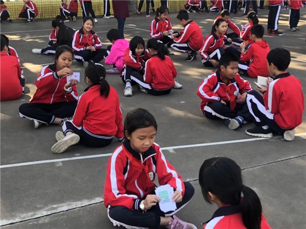 本次活動(dòng)主要是通過(guò)同學(xué)之間“兩兩結(jié)對(duì)”,用單詞卡片進(jìn)行問(wèn)答的方式展開。活動(dòng)開始之前,學(xué)生們有組織地來(lái)到各自班級(jí)的活動(dòng)區(qū)域,并按照分組有序地分組;然后拿出自己提前精心制作好的單詞卡片;接著“師友間”輪流抽卡認(rèn)讀,認(rèn)讀后再進(jìn)行拼讀。整個(gè)活動(dòng)中,一幅幅想象力豐富的圖片不斷出現(xiàn),一個(gè)個(gè)流利的英語(yǔ)單詞從孩子們的口中說(shuō)出,氣氛熱烈。
