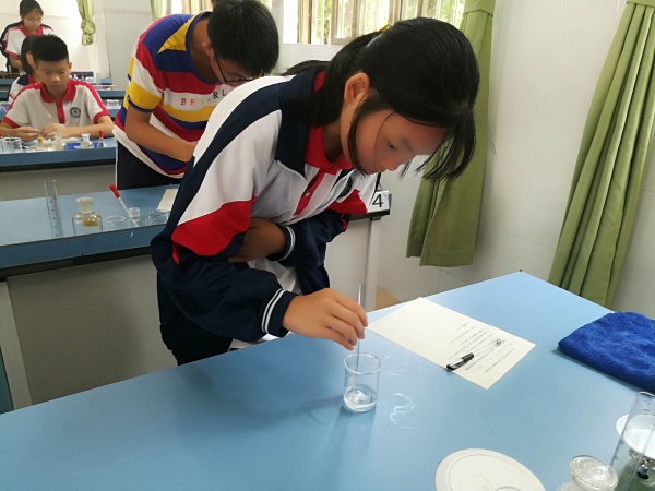 6月5日一早,工作人員有序地組織學生排隊候考,現場抽簽確定考題,接著進入試室;監考老師認真負責,學生細致、認真,沉著應考。在考核過程中,所有考生都認真按要求進行實驗操作,規范使用實驗儀器,記錄實驗結果。主管教學的毛賢偉副校長到現場督導考核工作的進行,化學科組的蔡豪、李群芬、廖加和、肖萍、付俊仙、余淑心六位監考老師認真負責觀察學生的實驗操作是否規范,根據《中山市2020年初三化學實驗操作考核評分標準》客觀地給學生評分。實驗結束后,考生把實驗考核卷提交并離開實驗室。此次考核,學生的動手操作能力和實驗探究能力得到了充分檢驗,也展現了南中學生對科學實驗的嚴謹態度。