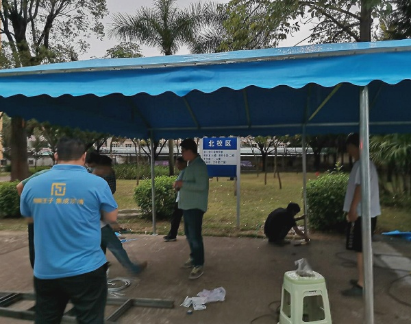 南頭鎮初級中學全校學生復學在即,學校大門是校園疫情防控的第一道防線 ,校門口測溫工作至關重要。但是,學校學生人數眾多,人工測溫方式速度較慢,容易影響學生進校時間,出現學生聚集的情況,所以,校門口測溫任務顯得較艱巨。當黃時康先生了解到相關情況后,二話不說,馬上聯系盧新泉校長,表明想捐贈人體熱感測溫系統協助學校做好校園疫情防控工作,并帶領工作人員于5月10日晚加班加點地將測溫系統安裝到學校北門。
