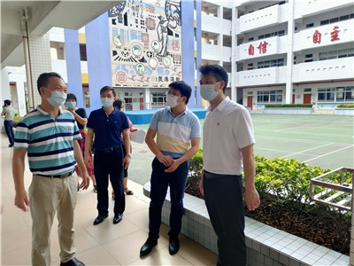 5月8日下午,根據(jù)《關(guān)于開展中山市2020年春季學(xué)期學(xué)生返校疫情防控第二、三批學(xué)校復(fù)檢、驗(yàn)收工作的通知》精神,南頭鎮(zhèn)紀(jì)委書記余漾、黨委委員薛焯明、副鎮(zhèn)長肖彥余、黨政辦副主任李純?nèi)A等南頭鎮(zhèn)返學(xué)工作領(lǐng)導(dǎo)小組到升輝小學(xué)對學(xué)生返校疫情防控第二、三批學(xué)校工作進(jìn)行預(yù)檢,升輝小學(xué)全體行政陪同預(yù)檢。檢查組重點(diǎn)檢查校園疫情防控物資保障、防疫制度及防疫宣傳教育落實(shí)等情況,并對教學(xué)樓、校門口、辦公區(qū)、校醫(yī)室、隔離留觀室等場所進(jìn)行檢查。余漾同志重點(diǎn)強(qiáng)調(diào),疫情防控的物資必須得保障到位,各個場所也要按照標(biāo)準(zhǔn)布置好相關(guān)的內(nèi)容;薛焯明同志也提出了兩點(diǎn)要求:一是學(xué)生返校各項(xiàng)工作必須認(rèn)真落實(shí)到位,責(zé)任到人,保證返校復(fù)學(xué)工作順利開展;二是注重師生的心理健康,對個別心理個案要建立一檔一冊,發(fā)現(xiàn)問題及時處理,保障師生的身心健康。