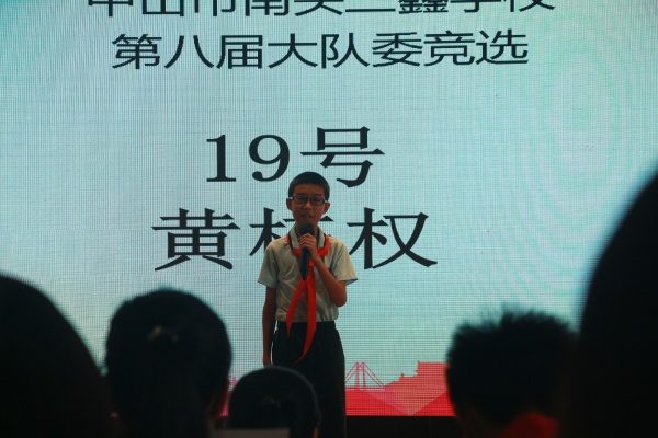 首先主持人介紹了南頭三鑫學校少先隊第八屆大隊委干部競選活動前期準備情況。經過各中隊的推選,共產生了21名大隊委候選人。在今天的活動中候選人將通過競職演講為現場的師生展現他們想為少先隊服務的熱切希望。