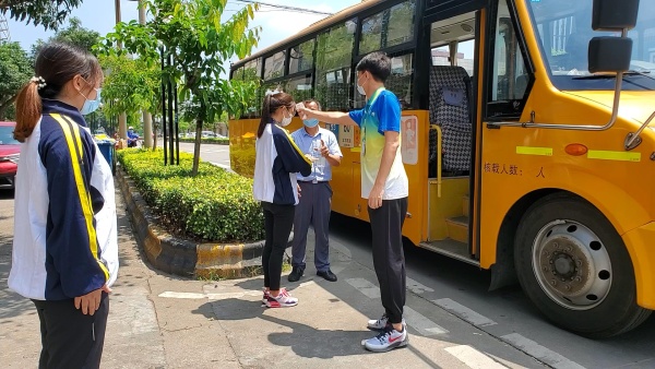 演練中,校園從上課鈴聲、值日崗位安排、場地設施、提示宣傳標語等全部按照開學后的規格進行布置。“學生”、“家長”和老師們也嚴格按照《中山市校園疫情防控衛生指引》、《南頭華暉學校2020年春季學期防疫工作及開學常規工作方案》、《南頭華暉學校教師一日工作生活指南》、《疫情期南頭華暉學校學生學習生活一日指南》進行全流程模擬演練。家長送到學校(乘坐校車到達學校)、進入校園、晨檢上課、課間管理、午餐午休管理、分批錯峰放學、行走路線、與家長交接、校車管理、宿舍管理等,認真執行每一步每一個細節,沒有半點馬虎。有時,為了讓師生們在視頻中看得更直觀、更明白,“演員們”冒著烈日和酷熱,一個步驟或動作往往要重復多次,從不同角度進行拍攝。一個場景下來,從“導演”到“攝影”、“演員”、“場務”,個個都是汗流浹背。
