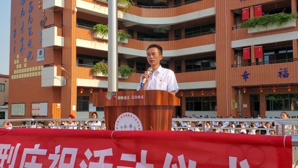 升旗結(jié)束后,學(xué)校黨支部書記、常務(wù)副校長(zhǎng)鄭堪文發(fā)表國(guó)旗下講話。鄭書記以飽滿的激情帶領(lǐng)全體師生回首了新中國(guó)70年的艱辛探索、重溫70年的光輝歲月、歷數(shù)70年的輝煌成就。使命呼喚擔(dān)當(dāng),奮斗鑄就輝煌,鄭書記號(hào)召全體師生不忘初心,牢記使命,堅(jiān)定信仰信念,厚植愛國(guó)情懷,錘煉強(qiáng)國(guó)本領(lǐng),立足崗位實(shí)踐,力踐報(bào)國(guó)之行,做新時(shí)代“四有”好老師,做社會(huì)主義合格接班人。以滿懷的熱情踏上新征程,用奮斗實(shí)現(xiàn)時(shí)代擔(dān)當(dāng),用奮斗描繪南頭華暉學(xué)校最美姿態(tài)!