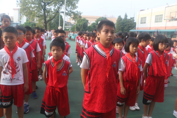 清晨,全校所有方隊整齊劃一地集中到學校的運動場,等待著籃球運動會的開始。首先進行的是全校師生共同參與的升旗儀式,國旗手一絲不茍,嚴陣以待,護旗手莊嚴肅穆,英姿颯爽!全校師生肅立,高唱國歌。緊接著,籃球運動會在凌軍校長的致辭后宣布活動開始!整個運動場沸騰起來了!