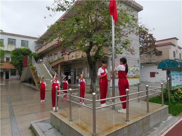 聽(tīng)著升旗手整齊的踏步聲,隨著洪亮的國(guó)歌伴奏,石軍小學(xué)全體師生莊嚴(yán)肅穆,注視著五星紅旗緩緩升起,唱起國(guó)歌,響遍校園。的確,就是因?yàn)橛凶鎳?guó)才有此時(shí)此刻平和、朝氣的校園。