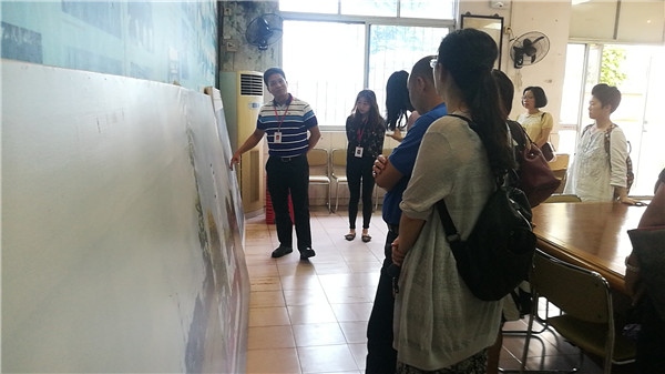 在梁校長的陪同下,來訪團首先參觀了石軍小學的校園環境,并觀摩了師生書畫展。來訪團一邊參觀,一邊交流,一邊駐足,一邊拍照,對石軍小學濃郁的校園文化氛圍無不表示稱贊。