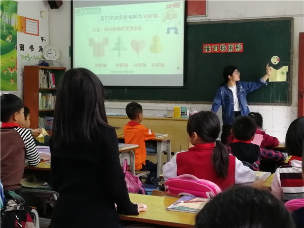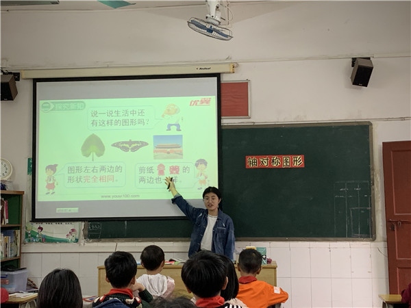 何婷婷老師執教的是二年級《軸對稱圖形》的空間與圖形。她首先以創設情境引入,以生活中眼鏡為例子,通過對比兩幅不同的眼鏡,讓學生初步感受對稱美,從而引起學生的學習興趣,接著讓學生觀察一些軸對稱圖形的共同特點,從而引出新的概念。在練習與鞏固環節,何老師設計了剪一剪和找一找兩個環節,充分體現了學生的動手操作能力。