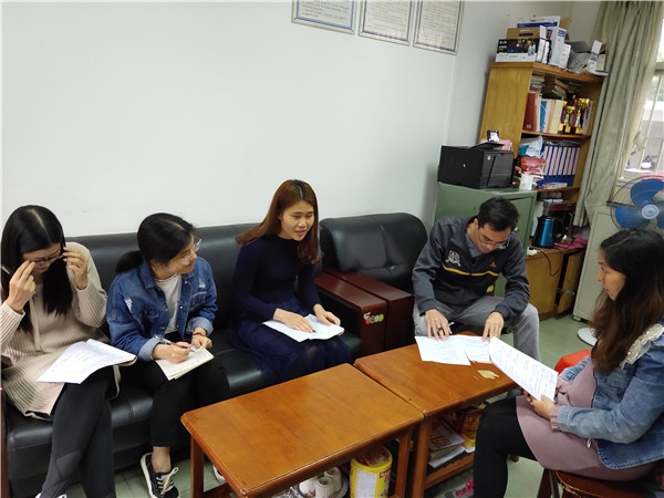課后,全體數學教師對本節課進行了評課,每位聽課老師都從教學設計、課堂提問和師生互動等方面提出了寶貴的意見。馮榮根校長首先肯定了本堂課的教學設計,并對各個教學環節進行了詳細的指導,其次梁蔚菁校長也肯定了何婷婷老師的認真和努力,并表示看到了何老師的成長,希望何老師能夠戒驕戒躁,繼續努力,爭取更快地成長。