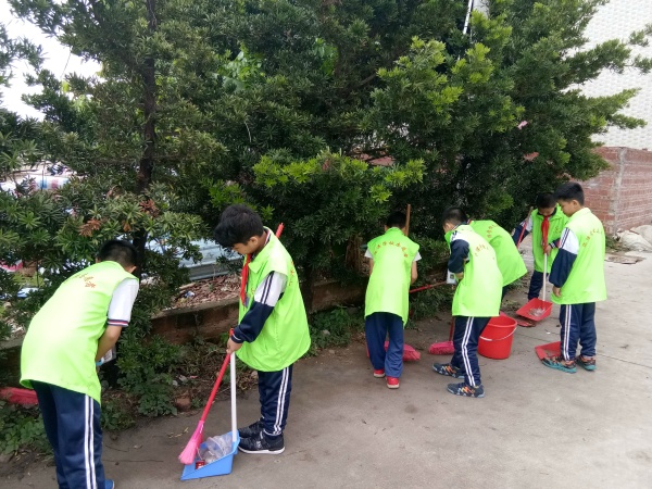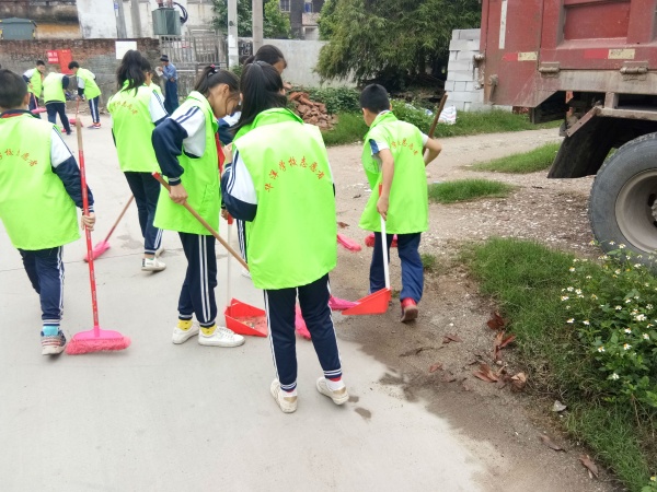 活動開始,少先隊員們興高采烈地拿著勞動工具,一個個精神抖擻,不怕臟不怕累,爭先恐后干得熱火朝天。有的拿著掃帚清理道路,有的拿著鏟子鏟粘地面比較緊不易打掃的垃圾,還有的同學兩人一組抬著垃圾桶來回的搬運著垃圾,同學們個個手腳并用,將一處處的垃圾清掃一空,老師們也身先士卒,參與到活動中來,同學們見狀更是倍受鼓舞,干得更加積極,師生共同努力,掃得不亦樂乎,街道上、衛生死角里到處都可以看見揮舞著的掃把和同學們辛勤的汗水,現場秩序井然,氣氛熱鬧非常。通過同學們近一個小時的努力,路上展現出一番新的亮麗景象,周邊的村民們也露出了贊許的目光。