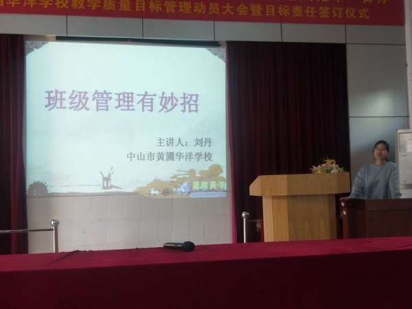 下午的會議分兩個流程,劉丹老師與大家分享了班級管理的經驗;華洋學校校長辦公室莫美瓊主任圍繞“品連心 同奮進 敢超越”2019年的工作主題,解讀了華洋學校“落實四項工程,夯實三大主科雙基”活動方案。首先,劉丹老師給大家簡單闡述了什么是班級管理和班級管理的基本任務,接著憑著自己在班級管理方面的經驗給大家介紹了六個班級管理的小妙招,分別是:一、做好晨檢工作,了解學生動態;二、充分發揮班干部的作用;三、用心關愛每一位學生;四、要認真負責,腿勤手勤;五、捕捉每個學生的閃光點 ;六、巧用小組合作。然后,莫美瓊主任給我們詳細解說了中山市黃圃華洋學校2019年“落實四項工程,夯實三大主科雙基”活動方案,在解讀的過程中,莫主任憑借自己的經驗,給老師們一一敘說了如何在語文、數學、英語三大學科的學習過程中,有效落實四項工程,與老師們分享應從哪方面提高教學水平,從根本上提高學生的知識水平。并強調老師應該把教育當成一門科學,一門藝術,不斷去追求,不斷去研究,不斷去創新。
