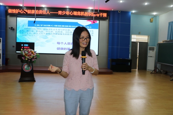 她結合科學數據讓教師們認識青少年的心理健康狀況,從中山市中小學生心理健康狀況、令人關注的青少年心理健康問題案例、心理危機預警信號出發,深入淺出的分析和講解,強調要做好學生的普訪,及時掌握學生動態。